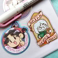 Pegatina de 5x3cm impresa en vinilo transparente. Precio con IVA incluido.